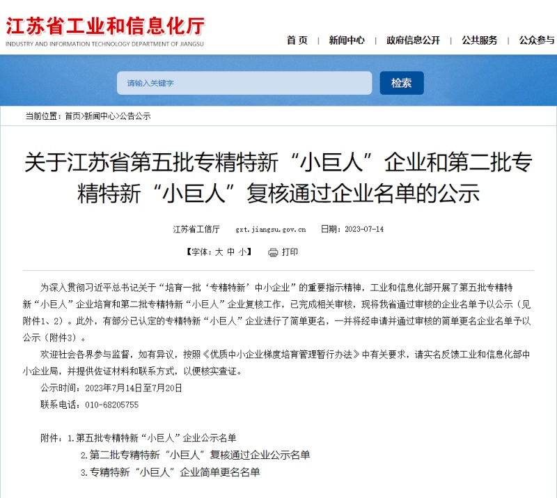 近日,江蘇省工信廳發(fā)布《關(guān)于江蘇省第五批專精特新“小巨人”企業(yè)和第二批專精特新“小巨人”復(fù)核通過企業(yè)名單的公示》。我們南通超力卷板機(jī)制造有限公司上榜第五批國(guó)家級(jí)專精特新“小巨人”企業(yè)名單。